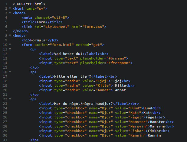 Nedan följer ett arbete där vi lärde oss at skapa vårat eget formulär